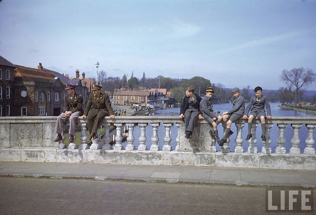 Várakozó amerikai katonák és angol iskolások a Temze-hídon