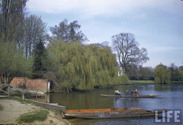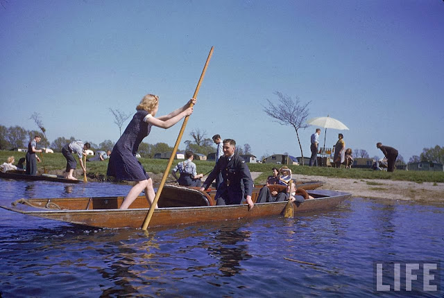 Temze folyón civil lakossal csónakázó/átkelő katona.