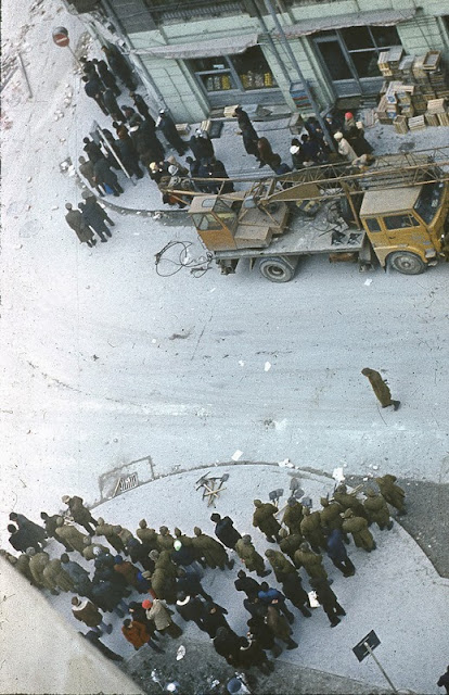 Az interneten fellelhető néhány filmfelvétel közül ezt választottam, mert ez az egyetlen, aminek nincsen Ceausescu propaganda íze, nem jelenik meg benne a kondukátor széles mozdulatokkal instruálva a helyreállításért felelős elvtársakat.